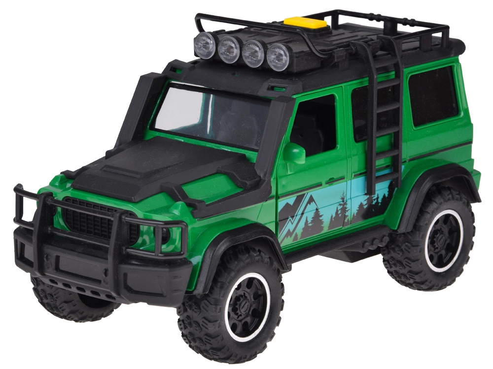 Das Geländefahrzeug hat öffnende Vordertüren und frei drehende Gummiräder für eine sanfte Bewegung auf jedem Untergrund.