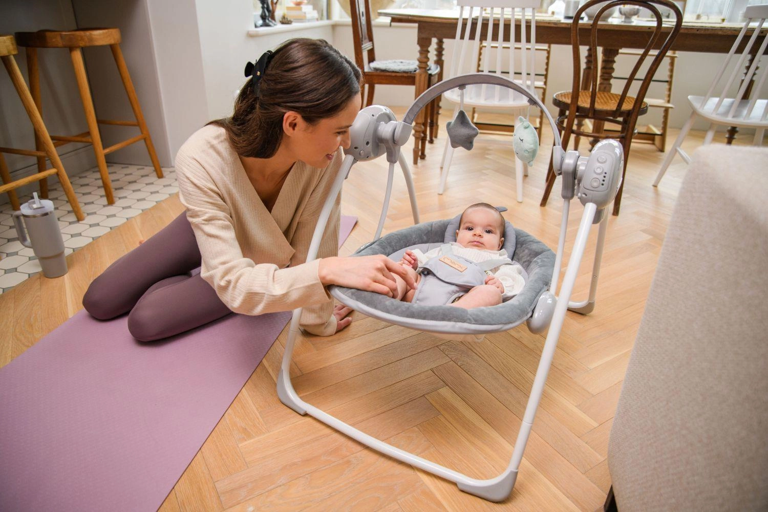 Wählen Sie das ideale Schaukeltempo für die schnelle Beruhigung Ihres Babys und stellen Sie die automatische Abschaltung auf 10, 15 oder 30 Minuten ein – für Komfort und Energieersparnis.