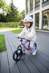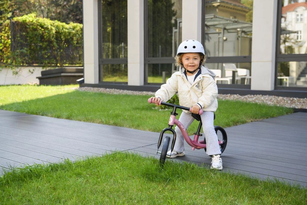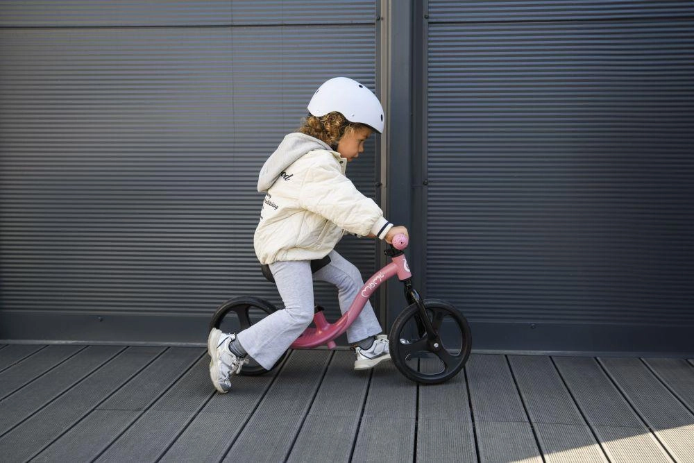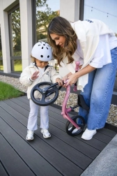 Komfort bieten Räder aus thermoplastischem Gummi (TPR), die Vibrationen besser absorbieren und guten Grip liefern. Die Höhe von Sattel und Lenker stellen Sie schnell und werkzeuglos ein, sodass das Rad mit dem Kind mitwächst. Der Verzicht auf eine Lenksperre fördert die Agilität und ermöglicht es dem Lenker, sich bei einem Stolpern wegzuklappen – das erhöht die Sicherheit.