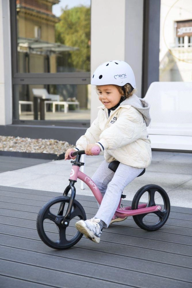 Das Laufrad MoMi ISOKA ist die ideale Vorbereitung auf das erste Fahrrad mit Pedalen. Dank niedrigem Gewicht und Stahlrahmen ist es robust und zugleich leicht zu handhaben. LED-Leuchten in den Rädern funktionieren per Dynamo – sie leuchten während der Fahrt und benötigen keine Batterien.