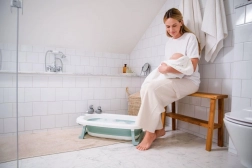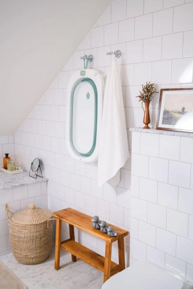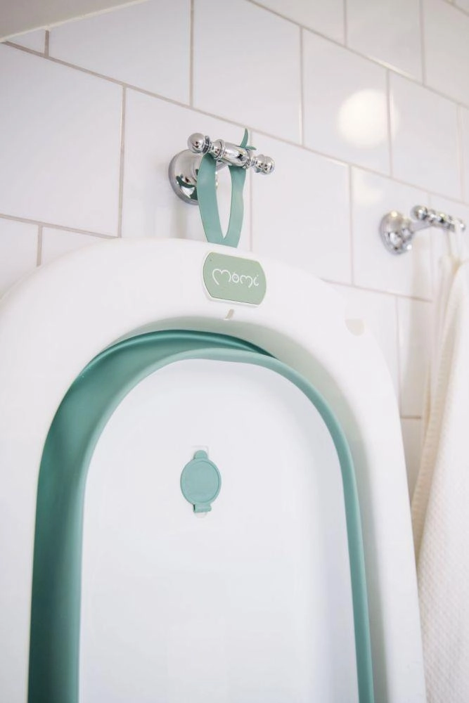 MoMi NATA ist eine clevere und platzsparende Lösung für das tägliche Babybad. Die Wanne lässt sich in Sekunden flach zusammenklappen, nimmt kaum Platz ein und kann auch in kleineren Bädern leicht verstaut werden. Die integrierte Aufhängeöse ermöglicht das Aufhängen für schnelles Trocknen und komfortable Aufbewahrung.