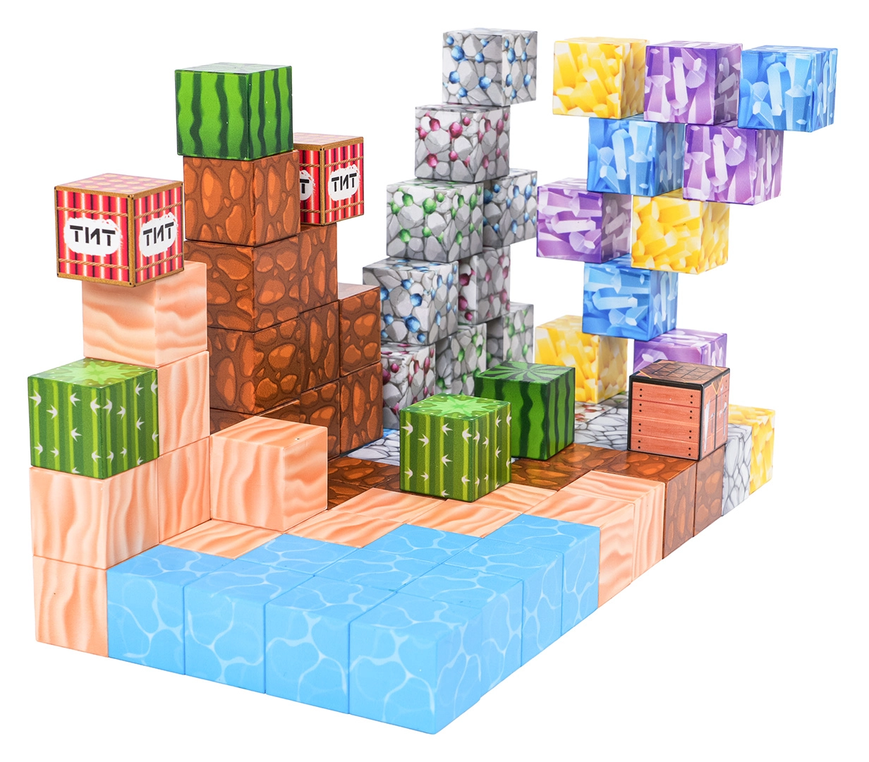 Dieses umfangreich ausgestattete Set magnetischer 3D-Bausteine bietet 88 farbige Teile mit Aufdrucken von Wasser, Sand, Felsen und Kakteen. Dank der starken Neodym-Magnete halten die Teile fest zusammen, sodass Kinder leicht stabile Bauwerke und fantasievolle Szenerien errichten können. Ideal als Geschenk und eine großartige Möglichkeit, die kindliche Vorstellungskraft zu fördern.