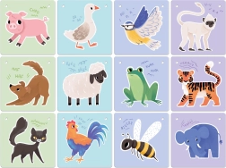 Über Miau, Wau und Brumm lernen Kinder zu unterscheiden, trainieren das Hörvermögen, den Sprachrhythmus und gehen ganz natürlich zu den ersten Wörtern über.