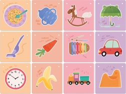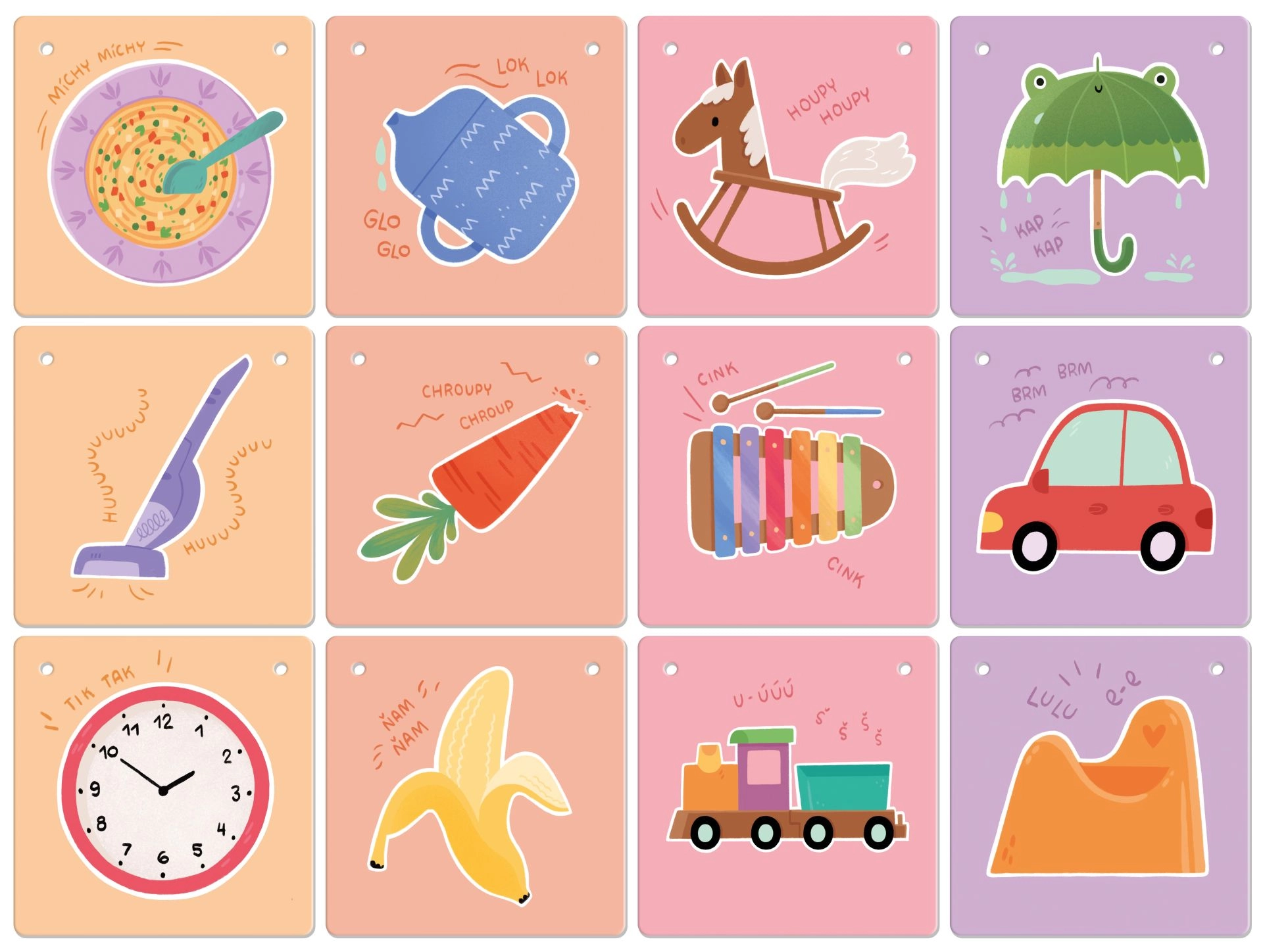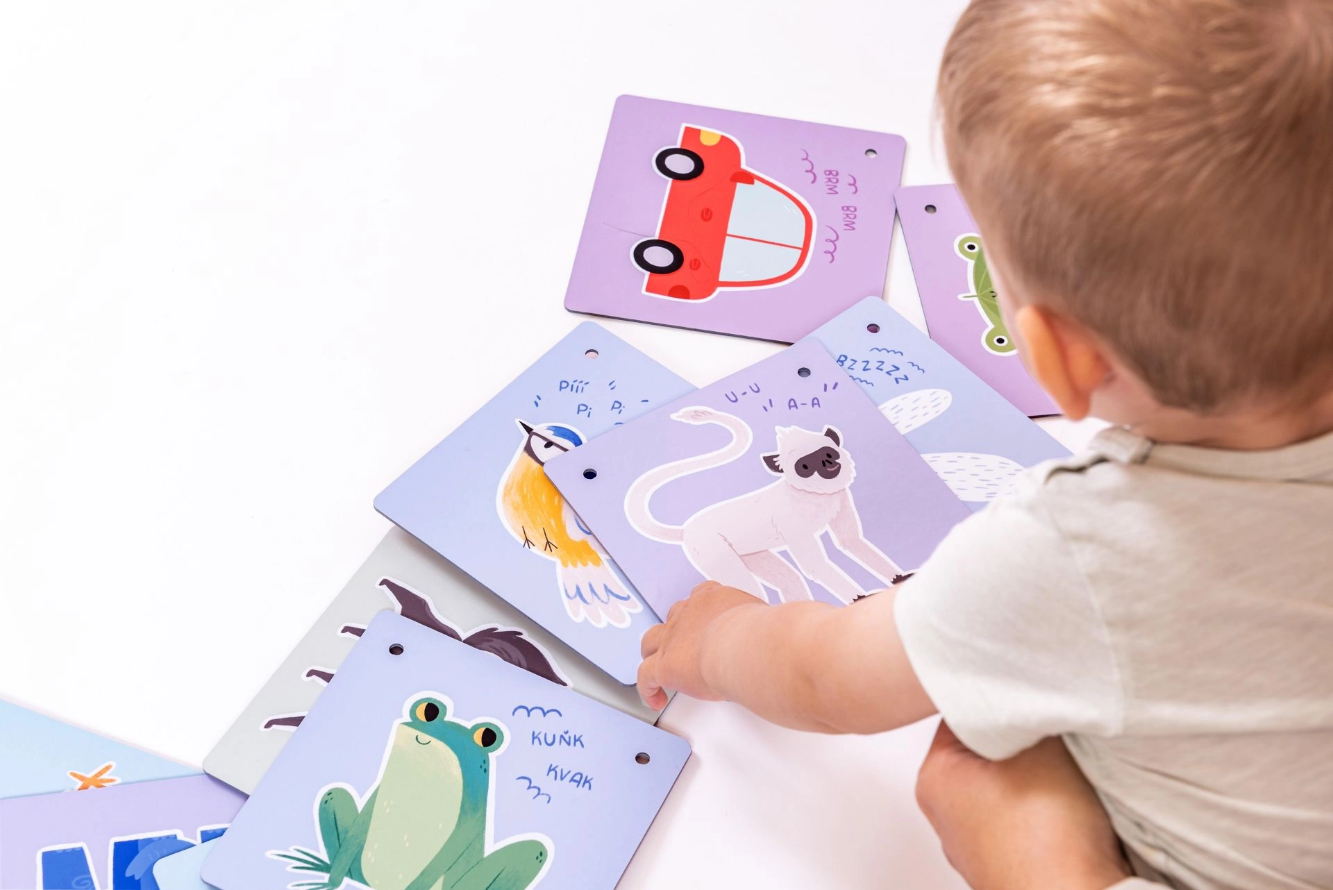 Im Alter von 12–30 Monaten wird die Sprachentwicklung am stärksten durch die Nachahmung von Lauten beeinflusst. Das Wiederholen von Lauten stärkt die Sprechmotorik (Lippen, Zunge, weicher Gaumen), hilft, Melodie und Tempo der Sprache wahrzunehmen, und legt die Grundlagen für den Wortschatz. Die Karten dienen somit als Brücke von Lauten zu den ersten Wörtern.