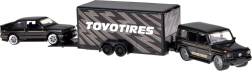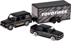 Der BMW M3 E30 lässt sich leicht in den geschlossenen Anhänger mit Rampe verladen. Der Anhänger kann ohne Schrauben abgekoppelt werden – ideal zum Spielen und Präsentieren.
