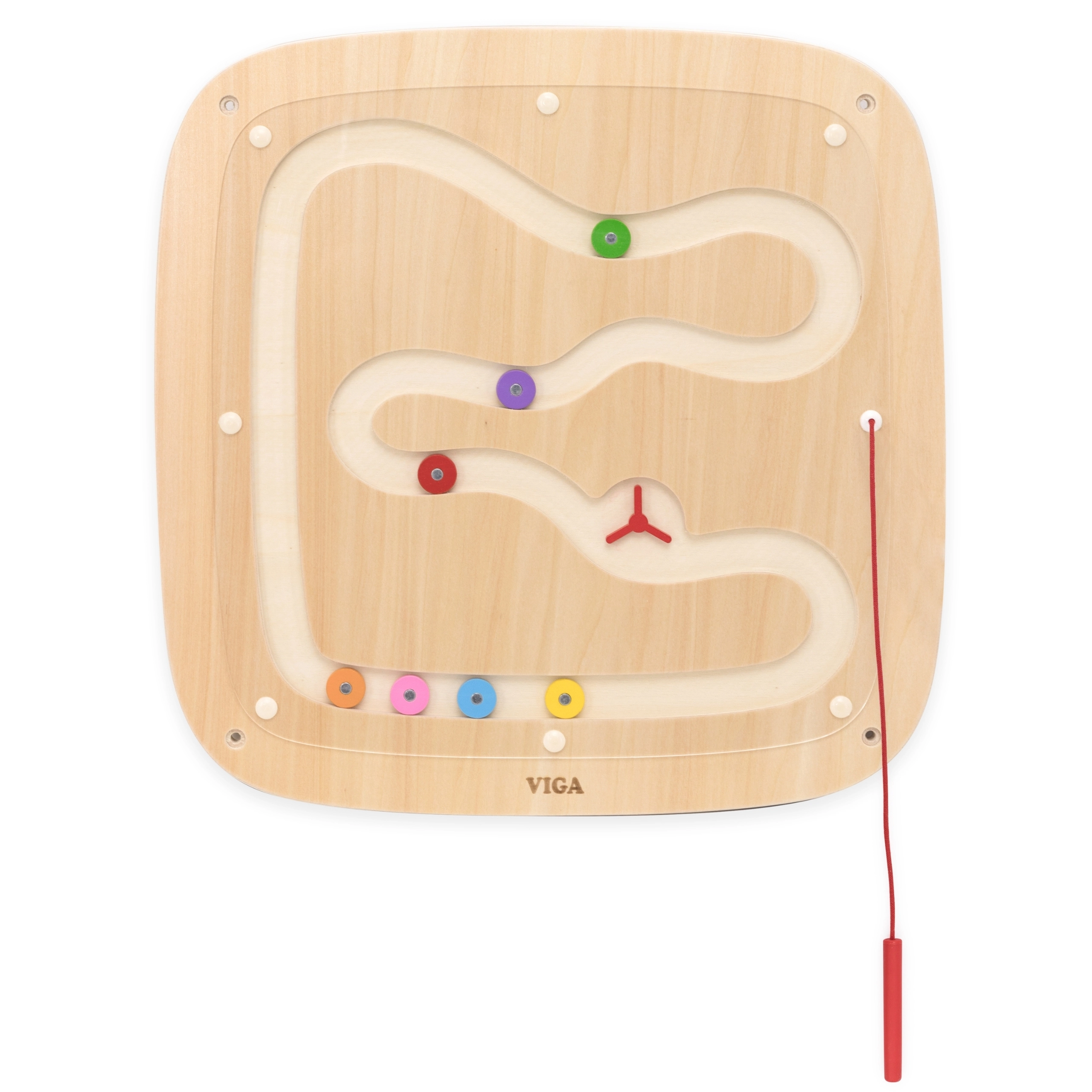 Diese wandmontierte magnetische Tafel von VIGA ist ideal für Kinderzimmer, Kitas und Spielräume. Zwei verschiedene Strecken – eine gerade und eine geschwungene – zeigen Kindern anschaulich, wie die Schwerkraft die Geschwindigkeit und Flugbahn der Bewegung beeinflusst. Der beigefügte Magnetstift an der Schnur führt die bunten Scheiben sicher unter der transparenten Abdeckung.