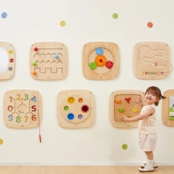 Die langlebige Konstruktion, die glatte Verarbeitung und die Wandbefestigung sorgen für eine sichere Nutzung und Platzersparnis in Spielzimmer, Kindergarten oder Kinderzimmer. Ein ideales Hilfsmittel für Vorschulkinder ab 2 Jahren, das natürliche Neugier und Geduld fördert.