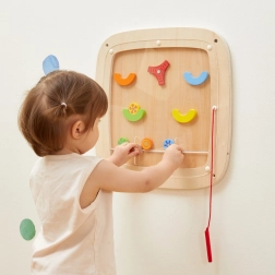 Diese hölzerne Wandtafel ist ideal für Kinderzimmer, Spielräume und Kindergärten – die Wandmontage spart Platz und sorgt für sicheres, stabiles Spielen. Mit dem magnetischen Stift steuern Kinder die Bewegungsrichtung der Kugeln, überwinden Hindernisse und zielen auf Punktzonen, wodurch sie ganz natürlich Geduld, Konzentration und Koordination stärken.
