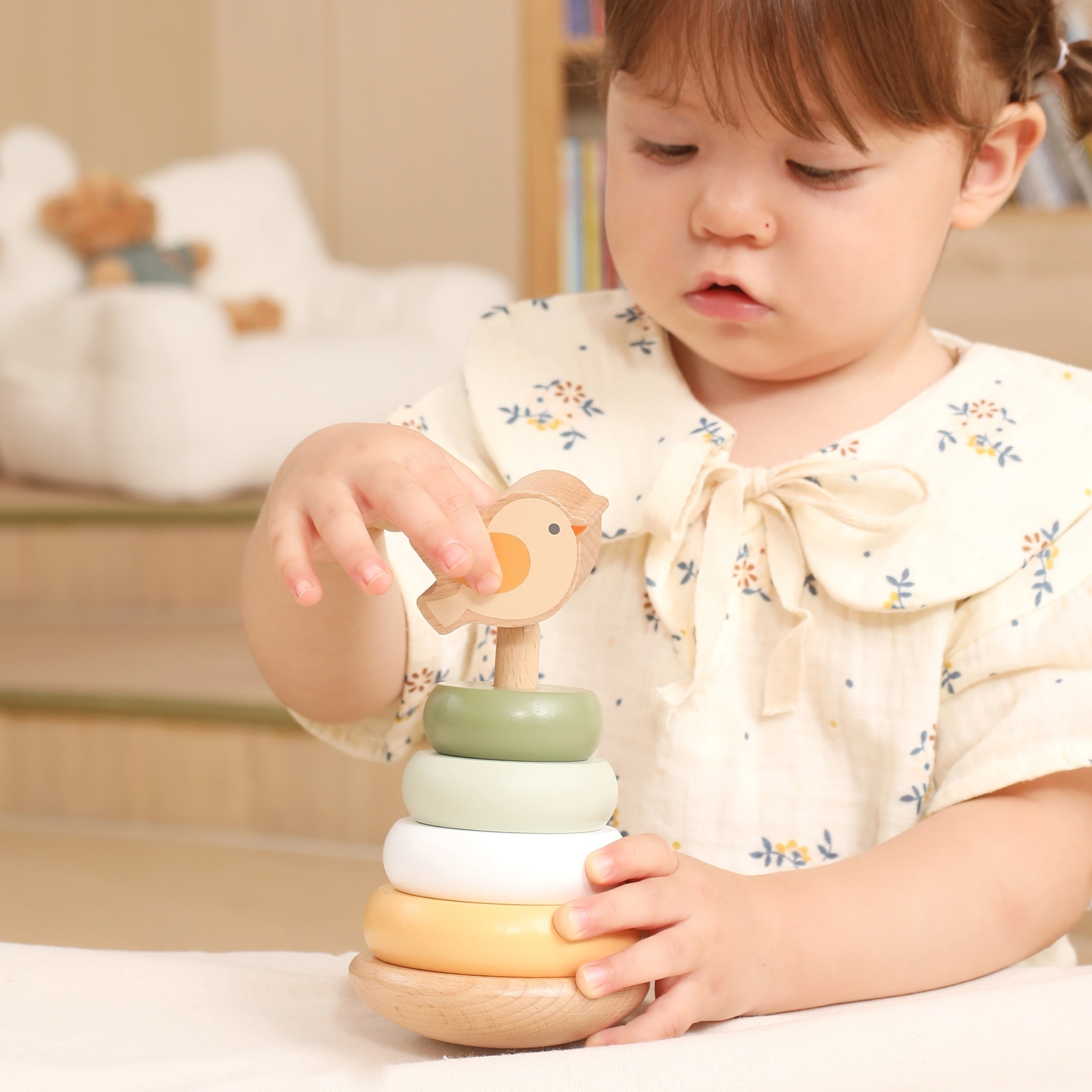 Das Vögelchen an der Spitze motiviert Kinder, den Turm fertigzustellen, und fördert Geduld sowie Konzentration. Ein toller Begleiter für tägliche Entdeckungen.