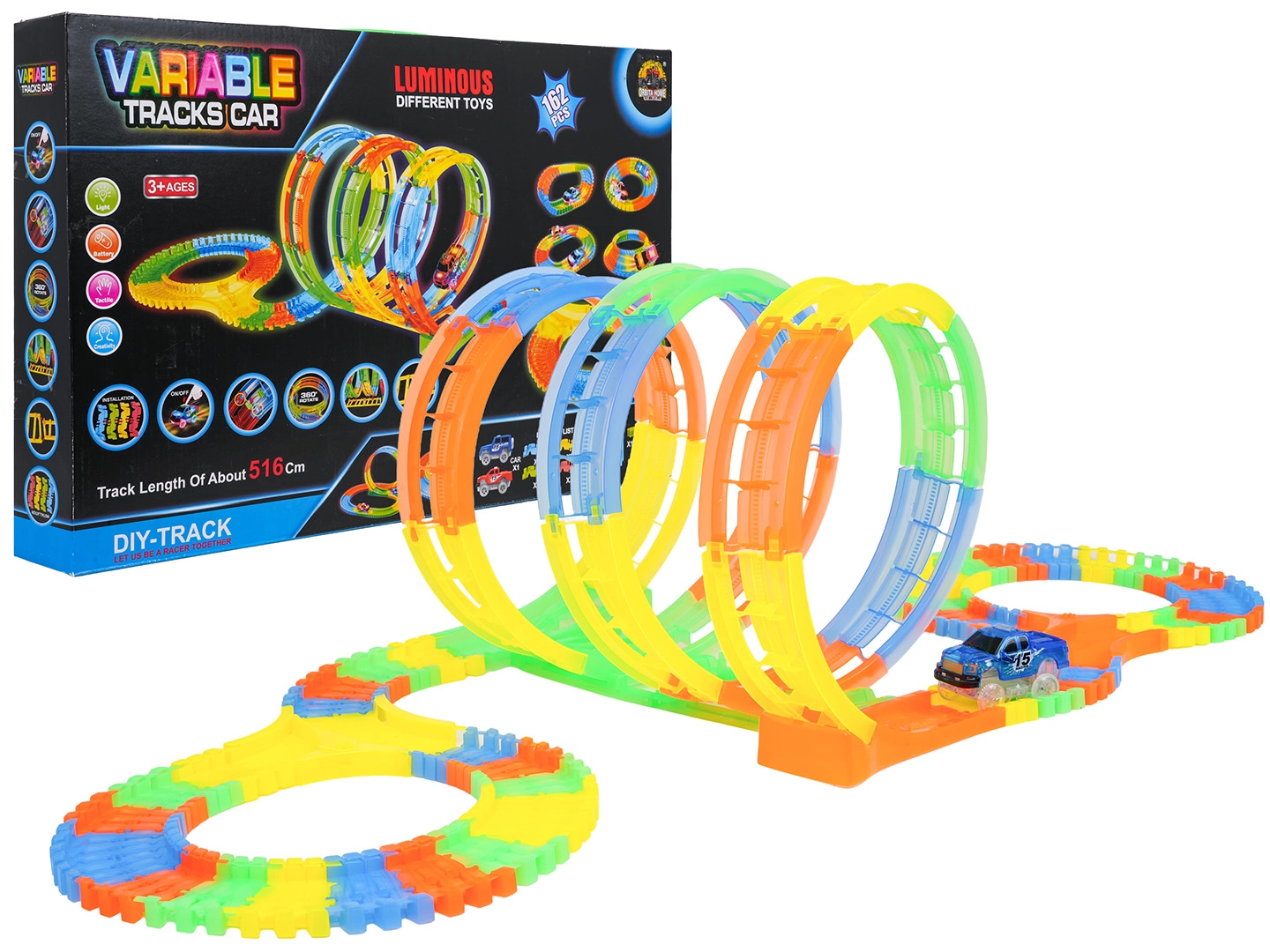 Rennbahn Variable mit 162 Teilen, leuchtet im Dunkeln