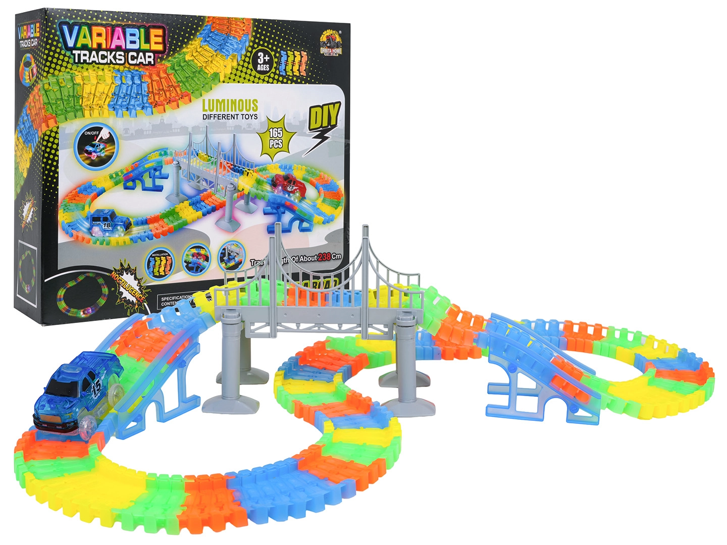 Leuchtende Rennbahn VARIABLE 165 Teile