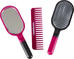 Zum Set gehören außerdem Kämme, Bürste, Spiegel, Sicherheitsschere, Lockenwickler, Spangen und weiteres Zubehör für das Friseur-Rollenspiel. Leichte Konstruktion, moderne Farben und langlebige Materialien sorgen für eine lange Lebensdauer und komfortable Handhabung.