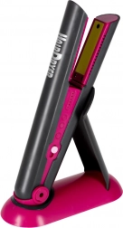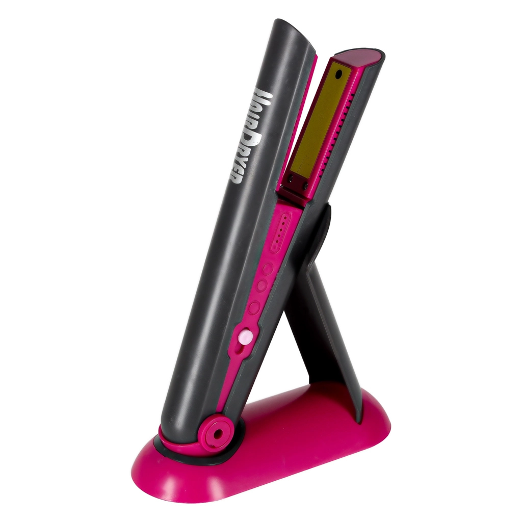 Das Kinder-Haarglätteisen leuchtet beim Drücken und simuliert den Betrieb, ohne sich zu erhitzen. Inklusive praktischer zweiteiliger Ablageständer für sicheres Abstellen.