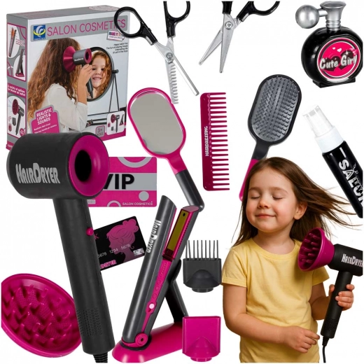 Friseur-Spielset für Kinder mit Geräuschen und Lichtern, Föhn und Glätteisen, 19 Teile