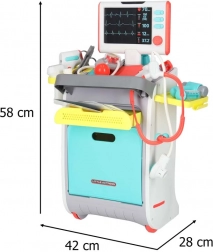 Das Hauptpanel spielt Melodien ab, die Instrumente leuchten und geben Geräusche von sich. Kinder probieren echte ärztliche Abläufe in sicherer Spielform aus.
