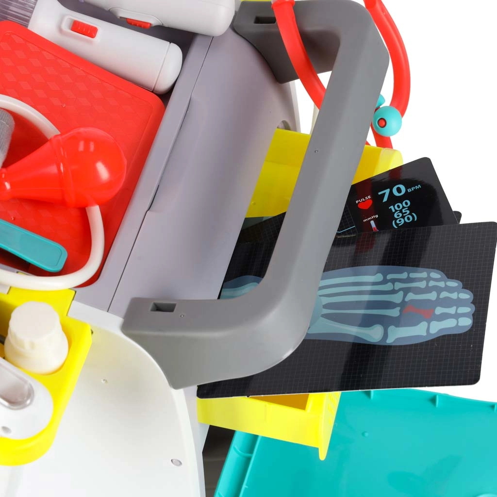 Diese interaktive ärztliche Kinderstation fördert kreatives Rollenspiel, Feinmotorik und soziale Fähigkeiten. Die Station spielt Melodien und Geräusche ab, ausgewählte Instrumente leuchten und reagieren – so wird die Untersuchung noch realistischer.