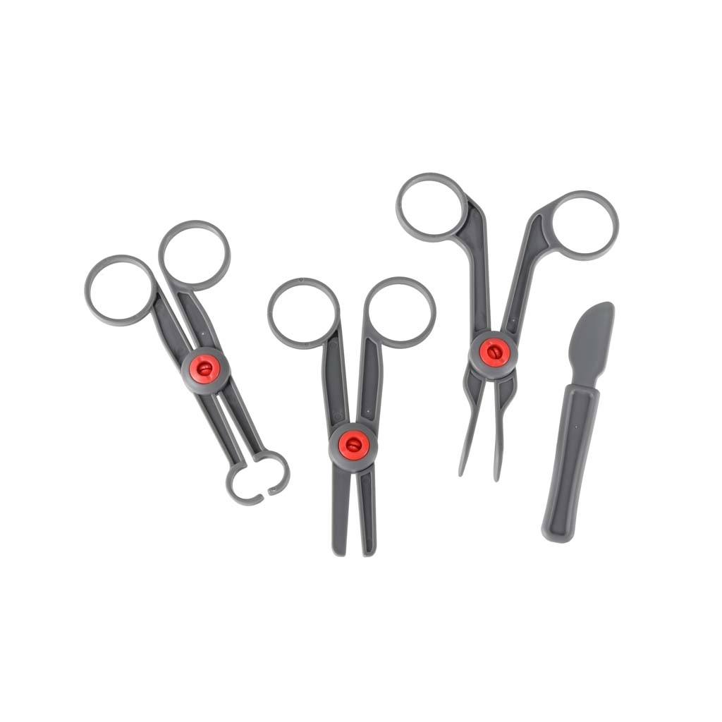 Vom Stethoskop und Blutdruckmessgerät bis zu Ultraschall, Thermometer und Spritze. Inklusive Röntgen-/EKG-Bildern, Schere, Zange, Pinzette, Skalpell und mehr.