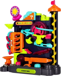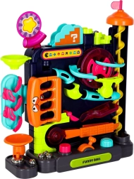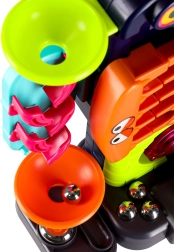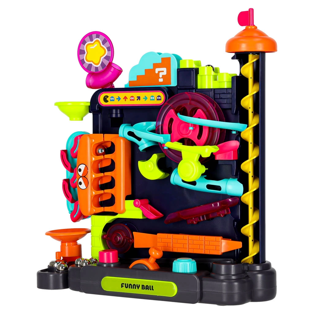 Entdecken Sie eine unterhaltsame Kugelbahn, die die Feinmotorik, die Hand-Auge-Koordination und das Verständnis des Prinzips Ursache–Wirkung fördert. Mit Hebeln, Rädern und Knöpfen führen Sie Metallkugeln über eine Strecke voller Rampen, Trichter und drehender Elemente. Die farbenfrohe Ausführung und die robuste Konstruktion sorgen für ein dynamisches Spielerlebnis und eine lange Lebensdauer.