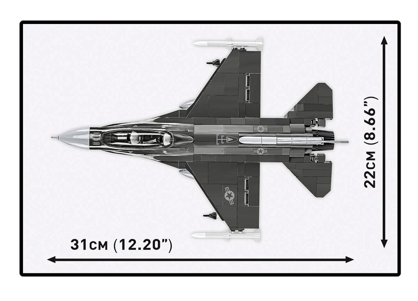 Enthalten sind zwei Minifiguren in Fluganzügen mit Helmen und Sauerstoffmasken, fein ausgearbeitete Lenkwaffen AIM-120 AMRAAM und AIM-9 Sidewinder sowie ein stabiler Ständer mit Modellname und Maßstab. Eine übersichtliche Schritt-für-Schritt-Anleitung begeistert junge Baumeister wie erfahrene Modellbauer.