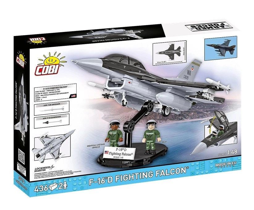 Die F-16D Fighting Falcon ist eine Ikone der modernen Luftfahrt – ein zweisitziges Mehrzweckflugzeug für Ausbildung und Einsatz. Dieses detailreiche Bauset im Maßstab 1:48 bildet seine aerodynamischen Linien, das Cockpit, Außenlasten und Bewaffnung originalgetreu nach. Dank offizieller LOCKHEED MARTIN Lizenz überzeugt das Modell mit präziser Verarbeitung und realistischen, direkt aufgebrachten Drucken.