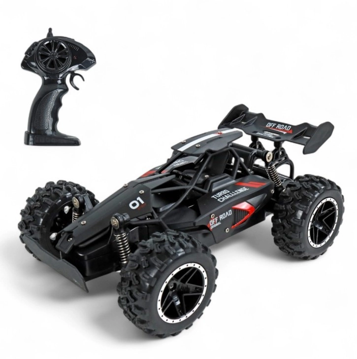 Erleben Sie Adrenalin mit dem RC‑Auto TURBO CHALLENGE OFF ROAD im Maßstab 1:18. Dank leistungsstarker Elektronik und unabhängiger Federung meistert es Unebenheiten, Staub und kleine Hindernisse. Die stabile 2,4‑GHz‑Steuerung sorgt für eine reibungslose Bedienung ohne Störungen und eine Fahrzeit von etwa 15 Minuten bei Höchstgeschwindigkeit.