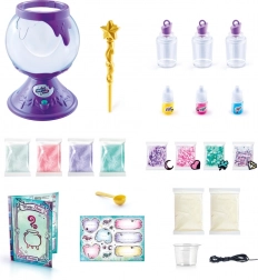 Stellt bis zu 10 bezaubernde Schleimtränke im magischen Kessel mit Licht- und Nebeleffekten her. Folgt den Rezepten und mischt Farbwechsel-Schleime, im Dunkeln leuchtende sowie blubbernde Elixiere. Einfach Pulver einfüllen, Elixier und Deko hinzufügen, mit dem goldenen Zauberstab umrühren und die fertigen Slimes in stylischen Fläschchen zum Umhängen aufbewahren.