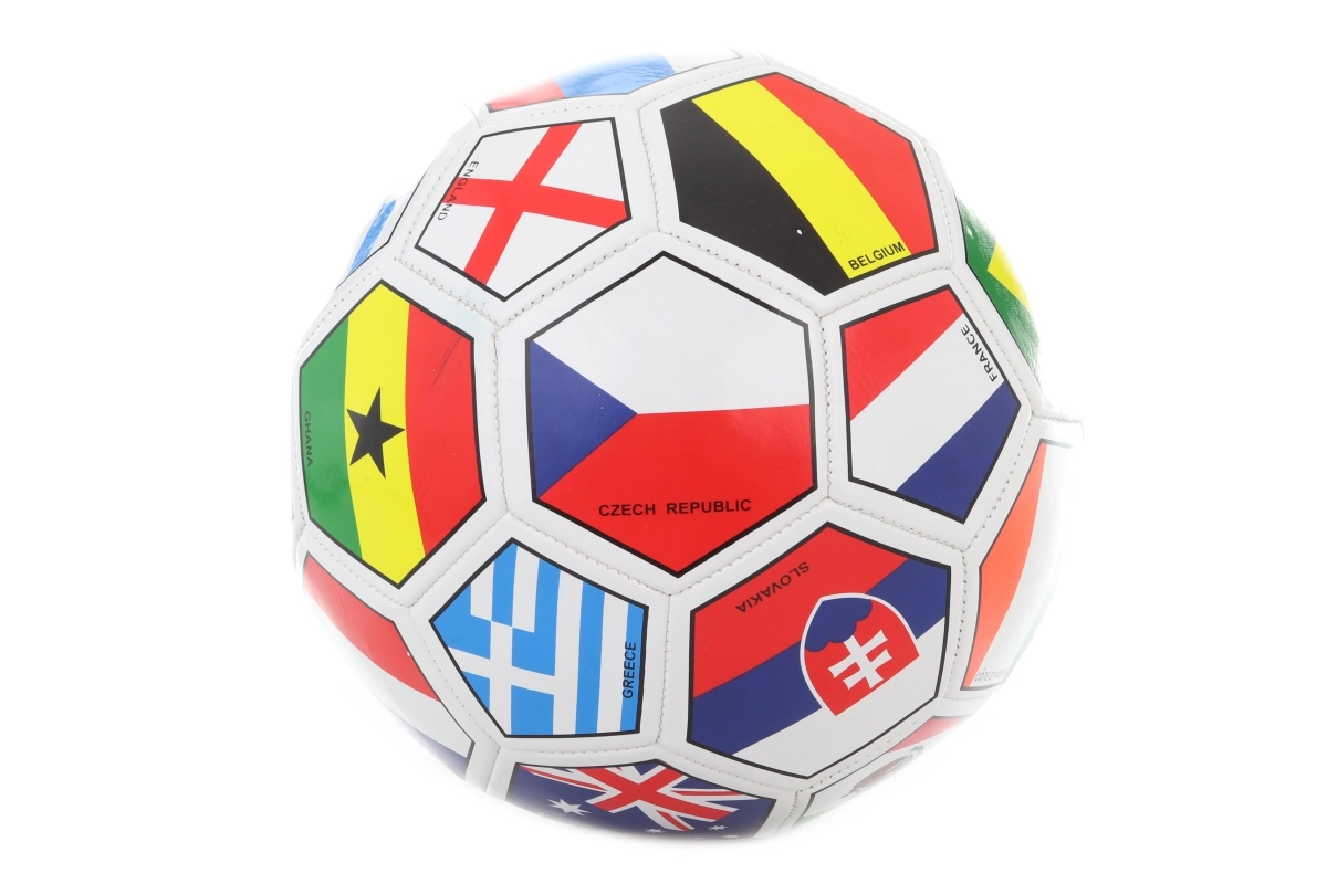 Entdecken Sie den Spielspaß mit dem Fußball mit Flaggen, der ein attraktives Design und angenehme Spieleigenschaften für den Freizeitgebrauch bietet. Der Ball ist für Gras- und Erdflächen geeignet – perfekt für Garten, Park und Sportplatz.
