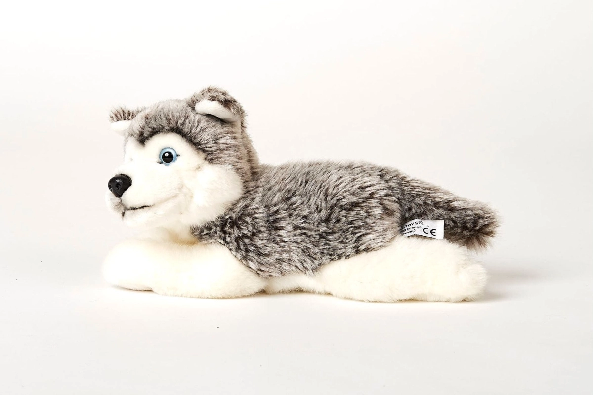 Suchen Sie einen superweichen Freund für tägliche Umarmungen? Der liegende Plüsch-Husky bietet realistische Details, eine sanfte Oberfläche und eine sichere Verarbeitung für die Kleinsten. Dank der kompakten Größe passt er leicht in den Kinderwagen, das Bettchen oder die Kindertasche.