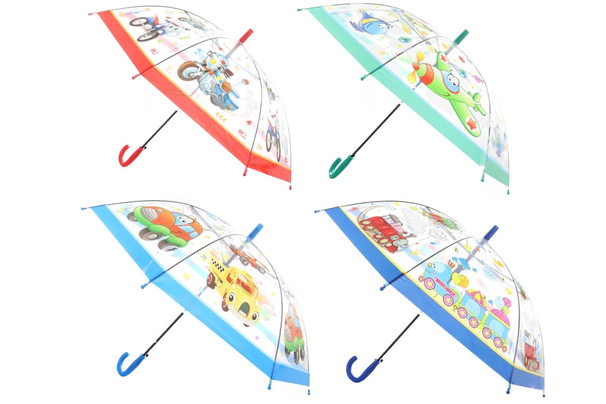 Ein stylischer transparenter Regenschirm mit Verkehrsmotiven begeistert Kinder und Erwachsene. Dank des Automatik-Mechanismus lässt er sich leicht öffnen, und seine kompakten Abmessungen sorgen für bequemes Tragen. Robuste Konstruktion und transparenter Schirmstoff bieten eine hervorragende Sicht auch im Regen.