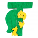 Der Einlegebuchstabe T mit kleinem Schildkrötenmotiv ist ein ideales Hilfsmittel für die erste Begegnung mit dem Alphabet. Die Teile greifen sanft ineinander und das robuste Design aus Massivholz hält dem täglichen Spiel stand. Die Oberfläche ist mit kinderfreundlichen, sicheren Farben behandelt.