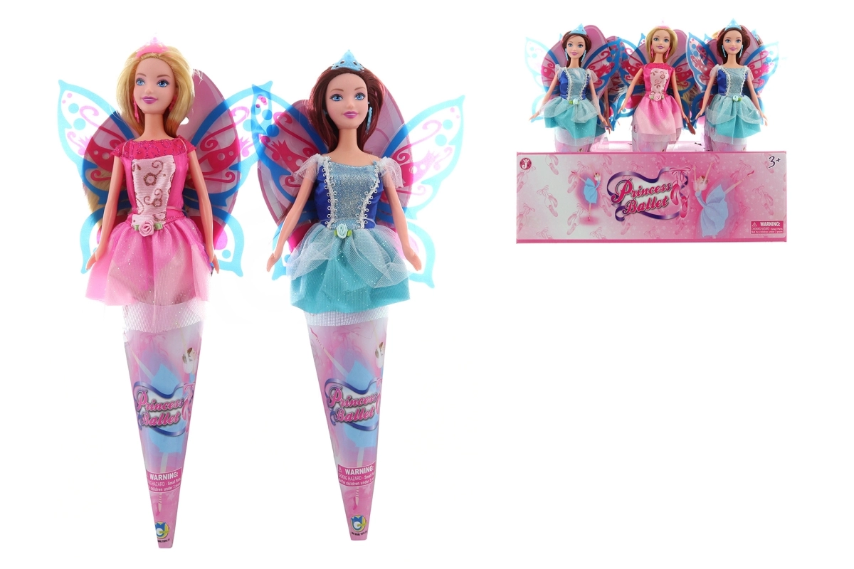 Elegante Accessoires wie Krone und Ohrringe verleihen der Puppe einen märchenhaften Charme. Die Puppe besteht aus robustem Kunststoffmaterial, während der Kegel aus Papier ist – perfekt als Geschenkverpackung.