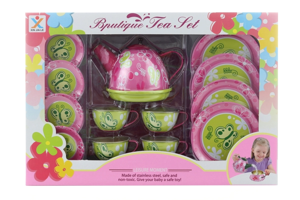 Das Set ist sorgfältig in einer Schachtel verpackt und bereit zum sofortigen Verschenken. Dank der leuchtenden Farben und des niedlichen Schmetterlingsmotivs wird es schnell zum Lieblingsstück in der Kinder-Spielküche.