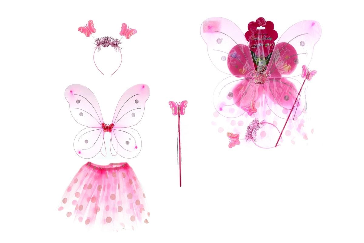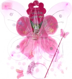 Die Accessoires runden das Kostüm ab – ein glitzernder Zauberstab zum Zaubern und ein verspielter Haarreif mit Schmetterlingen für noch mehr Verkleidungsspaß.