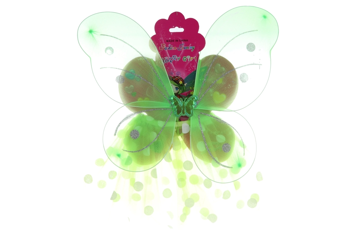 Transparente Schmetterlingsflügel mit glitzernden Pünktchen lassen sich leicht anlegen und sitzen dank elastischer Träger bequem. Ideal für langes Spielen ohne Druckstellen.