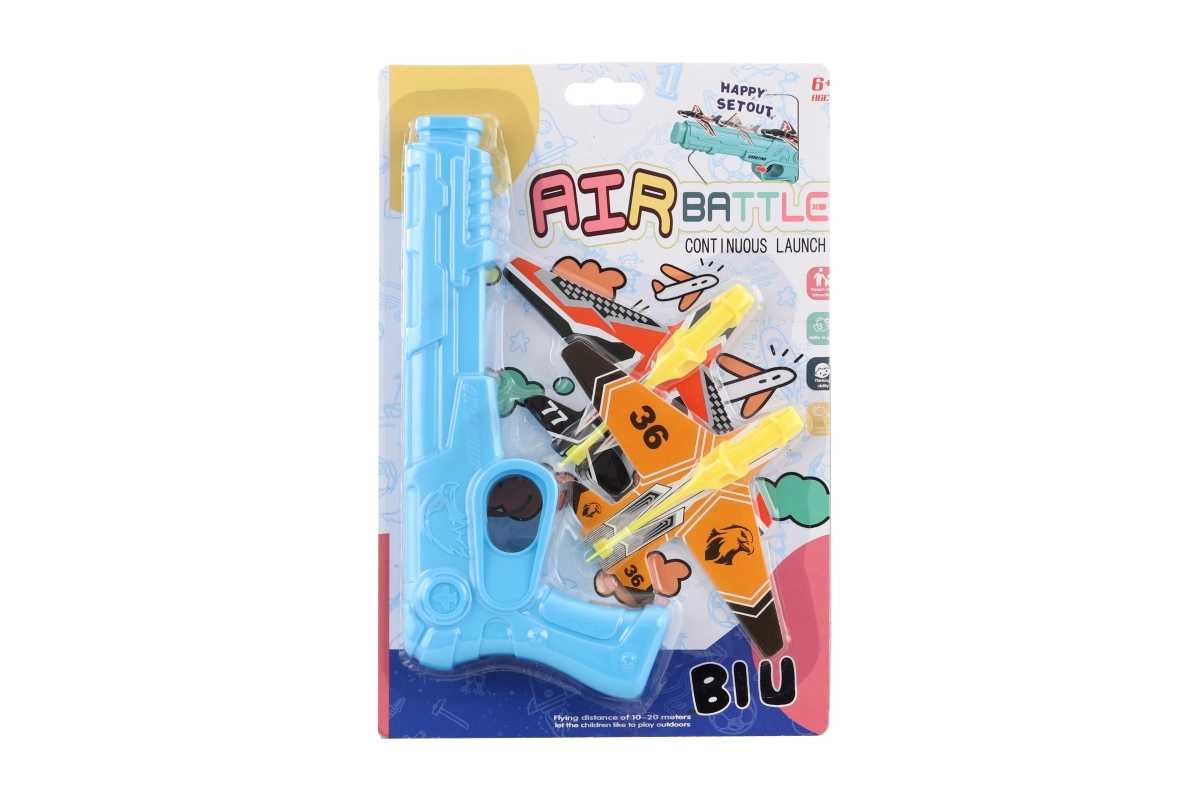 Erleben Sie actionreichen Spaß mit der Abschusspistole, die in Sekundenschnelle leichte Kunststoff-Flugzeugchen in die Luft schickt. Dank der einfachen Handhabung genießen Kinder und Eltern das Spiel gleichermaßen – zuhause wie im Freien. Das Set ist ideal zur Förderung von Koordination, schnellen Reaktionen und Wettbewerbsgeist.