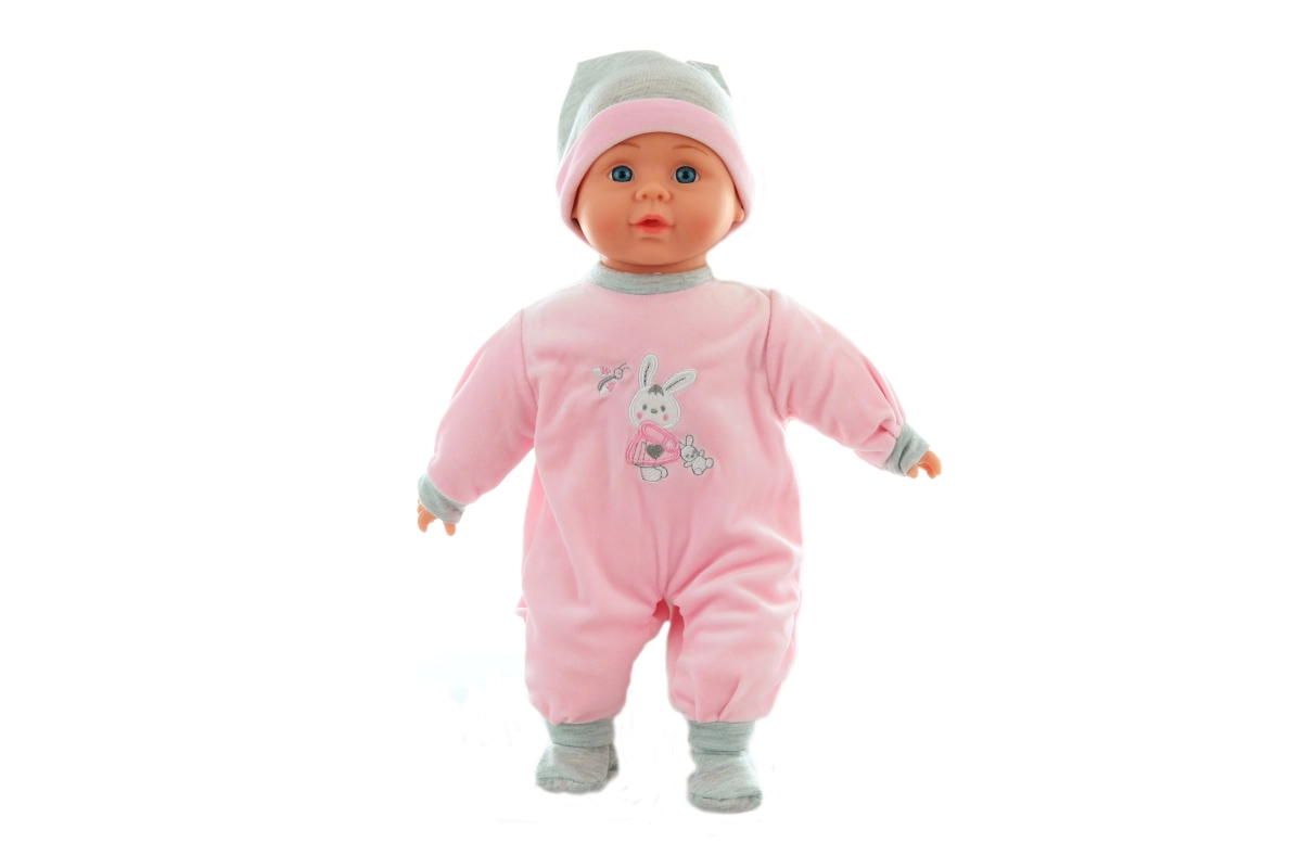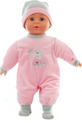 Diese Babypuppe mit einer Größe von 40 cm ist ein großartiger Begleiter für Rollenspiele rund um die Familie. Dank des weichen Körpers ist sie kuschelig und liegt gut in Kinderhänden. Der farbenfrohe Pyjama lässt sich dank Klettverschluss leicht ausziehen, was die Feinmotorik und Selbstständigkeit fördert. Beim Drücken auf den Bauch macht die Puppe Geräusche, die dem Spiel mehr Realismus verleihen.