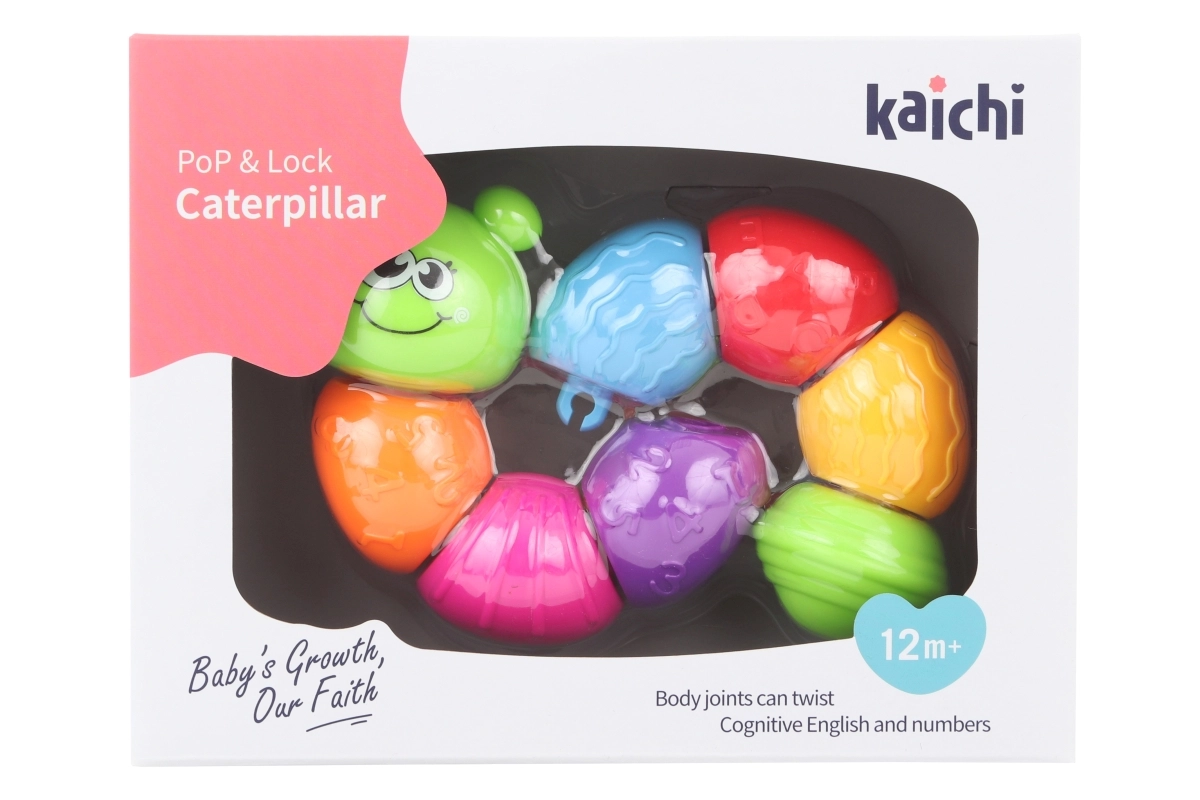 Ein lustiges und sicheres Spielzeug für die Kleinsten: Die verbindbare Kunststoff-Raupe mit abnehmbaren Segmenten fördert die Feinmotorik und Kreativität. Dank der Möglichkeit, verschiedene Formen zu gestalten und dem Rasselteil am Ende begeistert sie Kinder durch Klang und Farben. Jedes Segment ist einzeln abnehmbar, sodass das Kind mühelos eigene Kombinationen zusammenstellen kann.