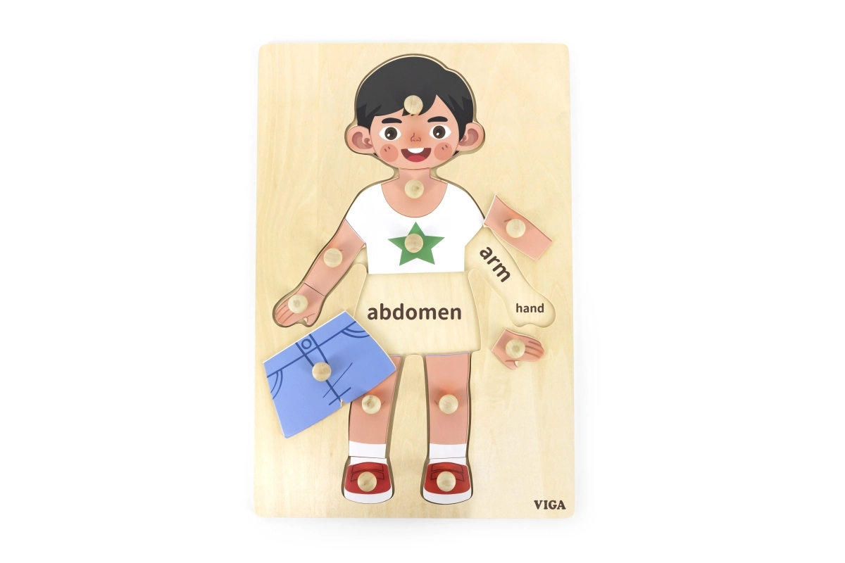 Dieses hochwertige Holzpuzzle mit Jungenmotiv ist eine großartige Wahl zur Förderung der Geschicklichkeit von Kindern. Dank der 12 robusten Teile trainieren Kinder die Hand-Auge-Koordination und lernen gleichzeitig, die einzelnen Körperteile zu erkennen. Geeignet für das Spielen zu Hause und im Kindergarten.