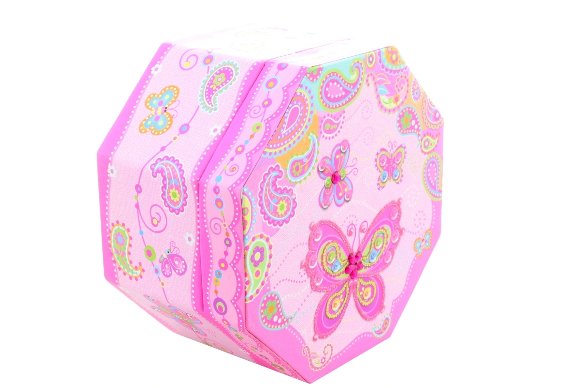 • Ästhetisches Design: zarte Schmetterlingsmotive und truhenförmige Gestaltung.