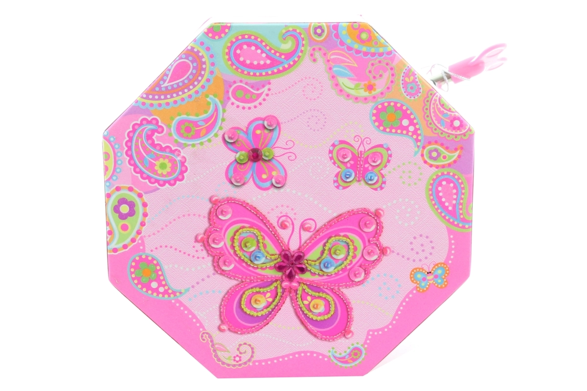 Das bezaubernde Spieluhr-Schmuckkästchen mit Schmetterlingsmotiv bringt den Zauber klassischer Spieluhren zurück. Nach dem Aufziehen des Schlüssels dreht sich im Inneren eine Ballerina, die zu einer angenehmen Melodie tanzt. Innen finden Sie außerdem einen praktischen Spiegel, der das Aufbewahren und Kontrollieren von Schmuck erleichtert.