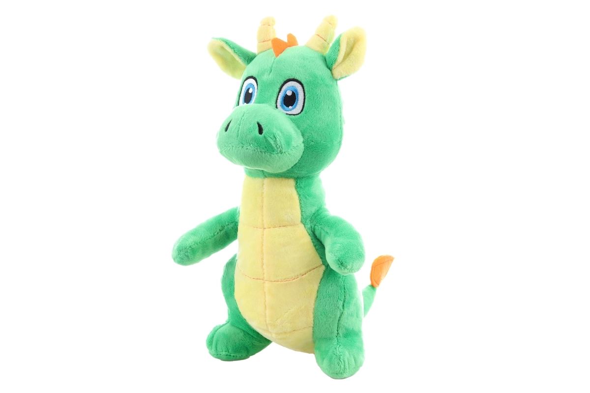 Dieser grüne Plüschdrache mit kontrastierendem Bäuchlein und liebevollen Details wird schnell zum Lieblingsbegleiter jedes Kindes. Dank der superweichen Oberfläche und der flauschigen Füllung ist er ideal für beruhigende Umarmungen und sanftes Spielen im Laufe des Tages.