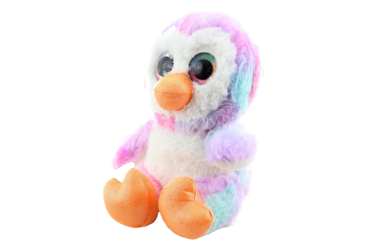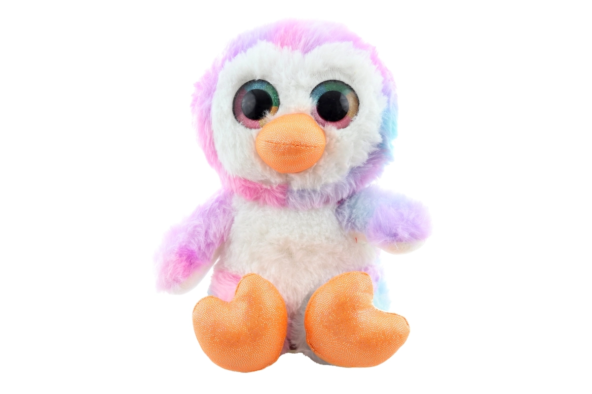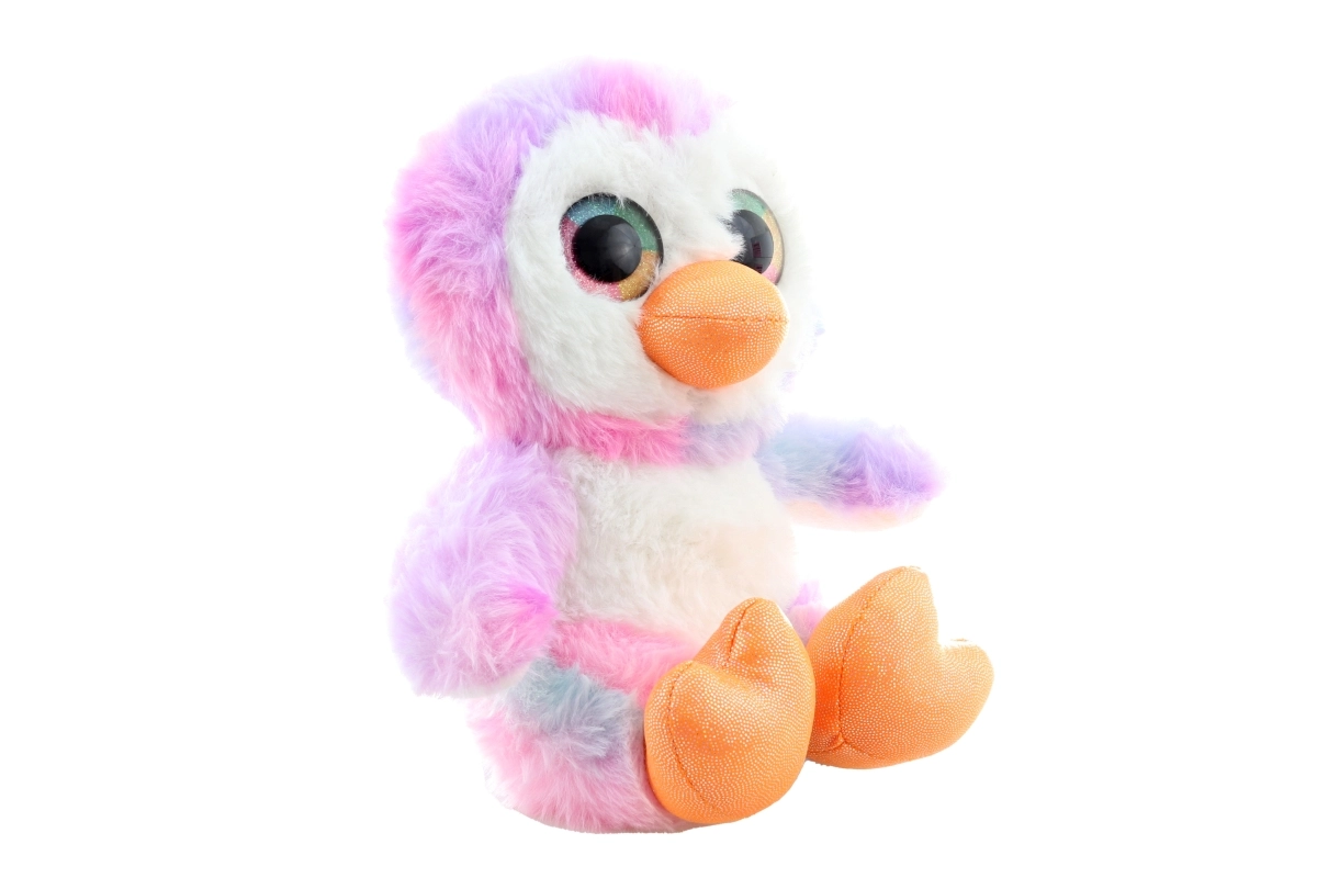 Bezaubernde große Glitzeraugen und zarte Pastelltöne (Rosa, Lila, Blau und Weiß) machen den Pinguin zu einem niedlichen Accessoire fürs Kinderzimmer.