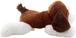 Dieser hellfarbene Plüschhund mit braunen Ohren und weißen Pfoten erobert schnell die Herzen von Klein und Groß. Dank der weichen Oberfläche und der liegenden Position ist er perfekt zum Kuscheln, Ausruhen und als Deko im Kinderzimmer. Die sichere Ausführung ohne kleine abnehmbare Teile ist für Babys geeignet.