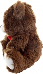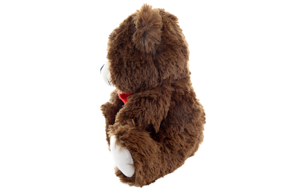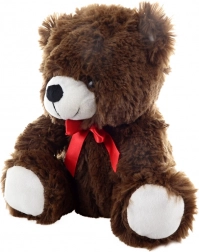 Dieser dunkelbraune Plüschbär erobert die Herzen von Kindern und Erwachsenen. Er hat weiches Fell, kontrastierende weiße Pfoten und ein Schnäuzchen, ausdrucksstarke Äuglein und eine niedliche rote Schleife. Dank der hochwertigen Verarbeitung und der weichen Füllung ist er perfekt zum Umarmen, Einschlafen und auch als Dekoration im Kinderzimmer.