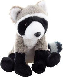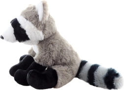 Dieser Plüsch-Waschbär besteht aus besonders weichem Plüsch, der zum Schmusen einlädt. Die natürliche Farbgebung mit typischer Maske und geringeltem Schwanz macht ihn sowohl zu einem attraktiven Spielzeug als auch zu einer hübschen Dekoration. Die Maße 22 × 16 × 18 cm (ohne Schwanz ca. 14 cm) gewährleisten die ideale Größe für kleine Kinderhände.