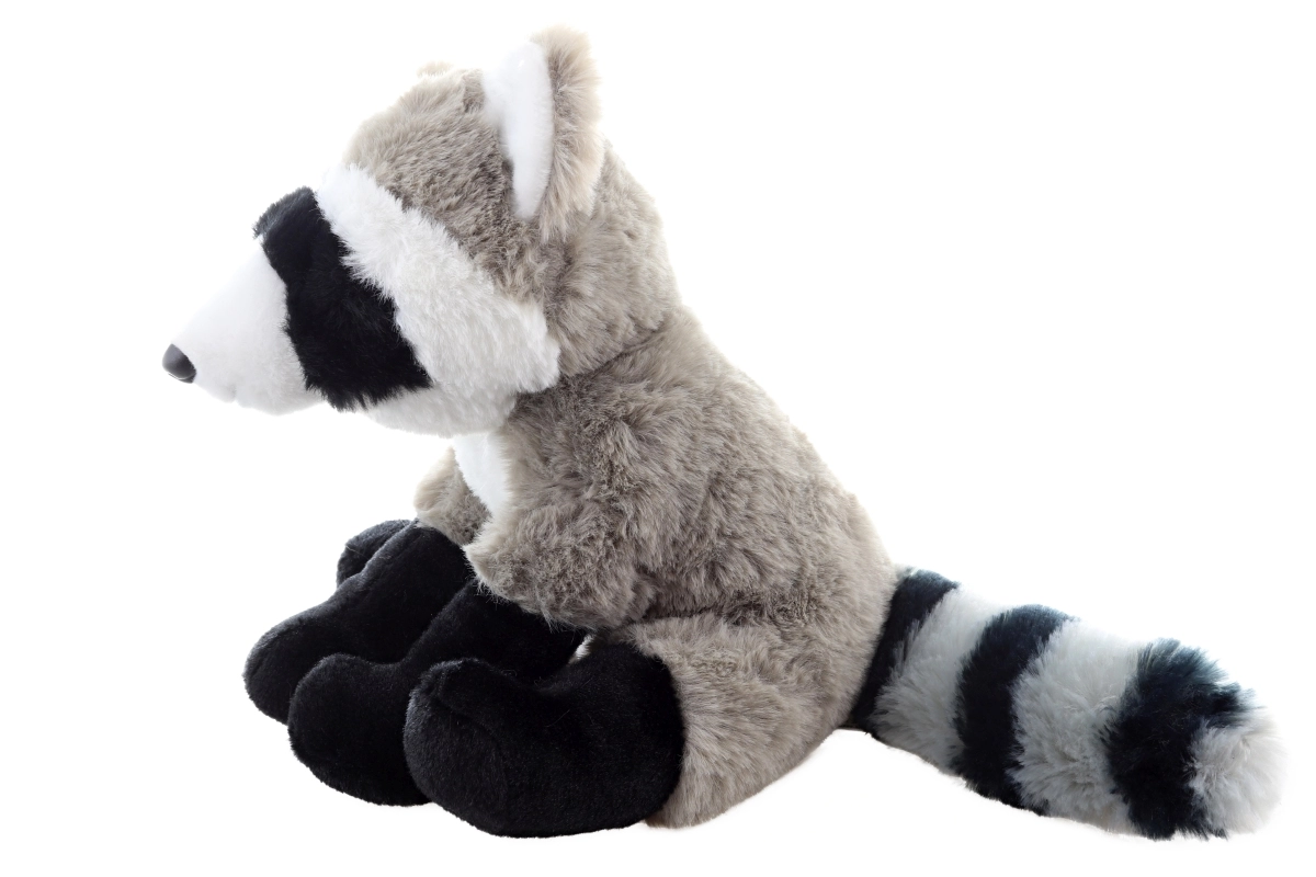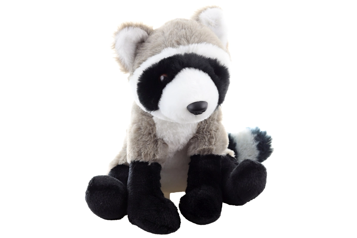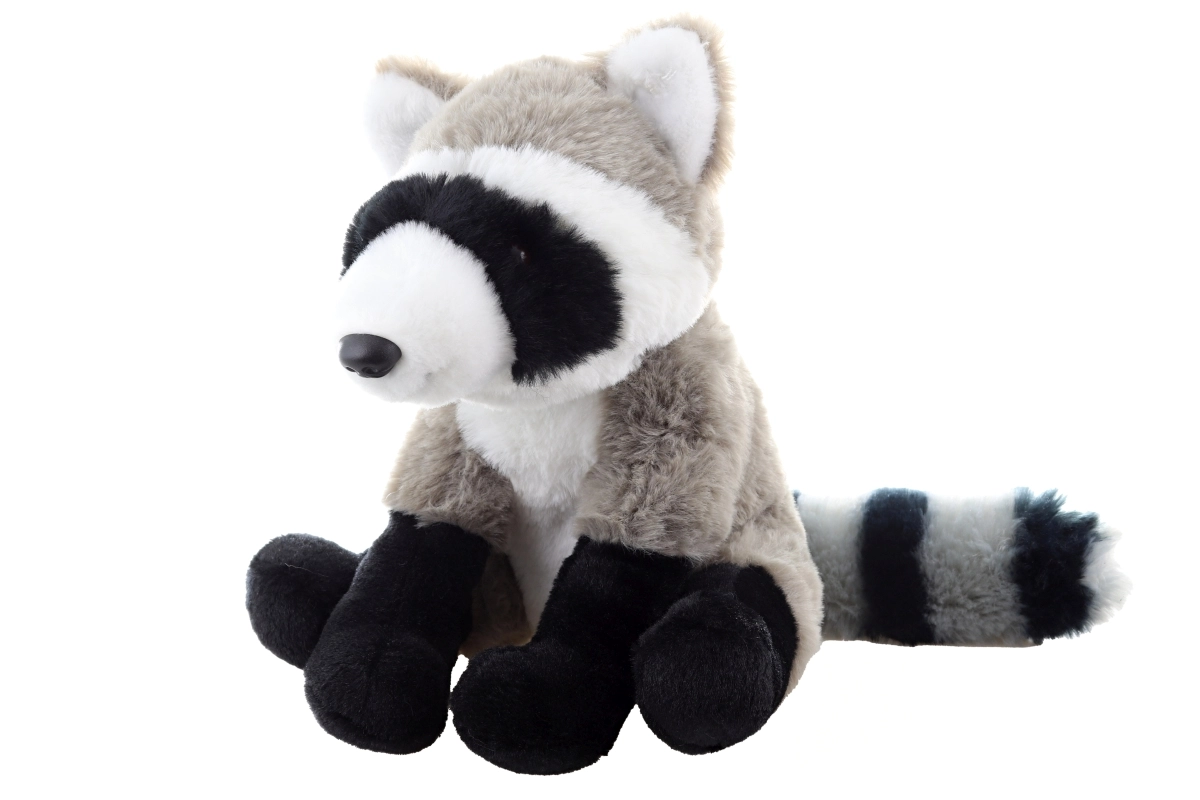 Die charakteristische schwarze Maske, Pfoten und der geringelte Schwanz verleihen dem Spielzeug ein niedliches und naturgetreues Aussehen.