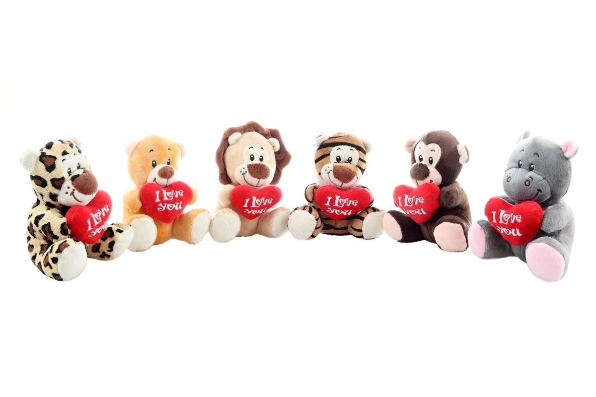 Ein niedliches Plüschtier mit rotem Herz „I Love You“ erfreut Kinder und Erwachsene gleichermaßen. Sie können aus mehreren Varianten wählen – Tiger, Löwe, Leopard, Bärchen, Äffchen und Flusspferd. Das Spielzeug ist superweich, sanft im Griff und ideal als Geschenk aus Liebe, Kuschelfreund zum Einschlafen und Dekoration fürs Kinderzimmer. Geeignet ab 0+.