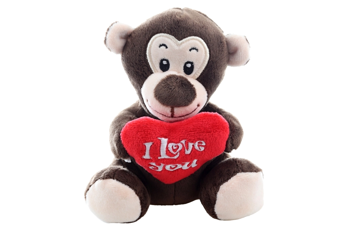 Das auffällige rote Herz mit gesticktem Schriftzug verleiht dem Spielzeug Charme und macht es zum perfekten Liebesgeschenk.