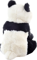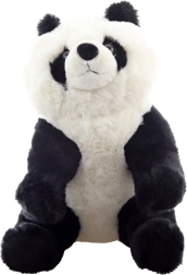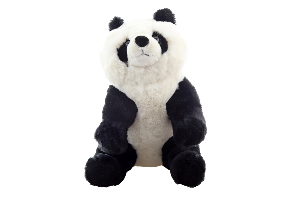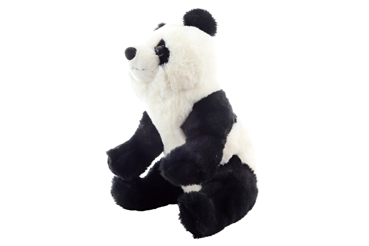 Plastikaugen, runde Öhrchen und präzise Nähte verleihen dem sitzenden Panda ein realistisches Aussehen.