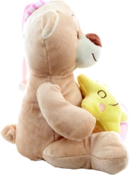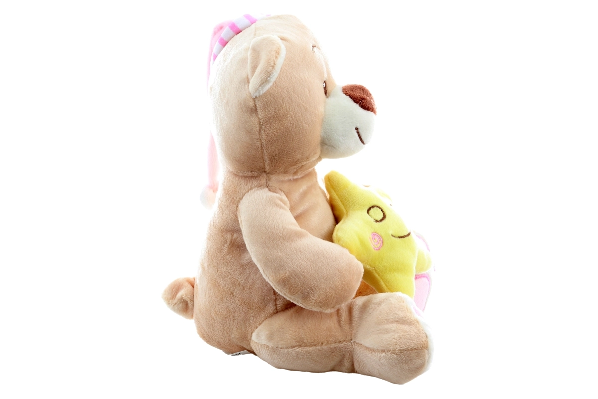 Dieser samtweiche Bär mit rosa Schlafmütze und einem zarten gelben Stern in der Hand vermittelt Kindern Geborgenheit und einen ruhigen Schlaf. Dank hochwertiger Verarbeitung und gestickter Details ist er auch für Neugeborene geeignet.